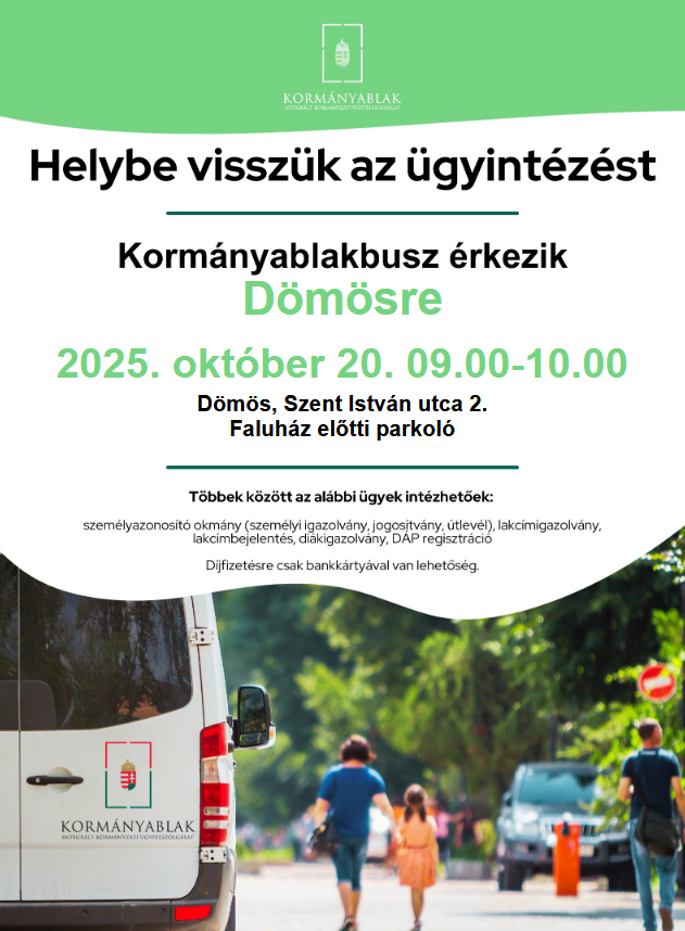 Tájékoztatom a Tisztelt Lakosságot, hogy a Pilismaróti Közös Önkormányzati Hivatal Dömösi Kirendeltsége